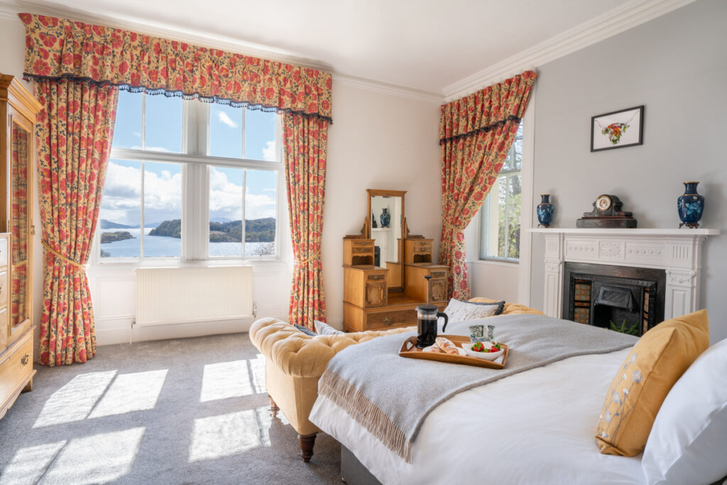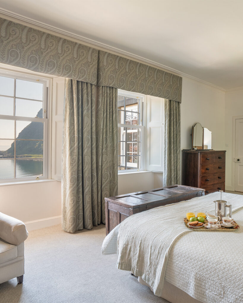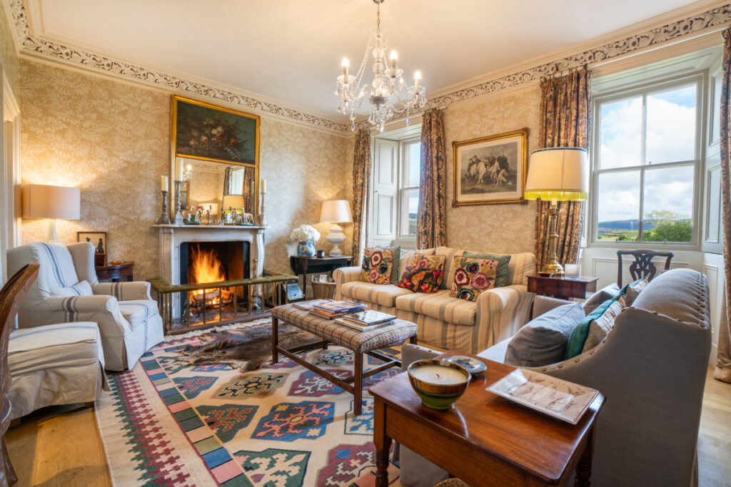 If your hunt for large holiday houses in Scotland takes you to grand Highland estates, then look no further than Kilfinichen House. This stunning mansion sits within manicured lawns close to Kilfinichen Bay on Loch Scridain, in a wonderfully wild setting to the south side of the island’s only munro, Ben More. Opulent interiors make this homestay feel just as special as your surroundings.