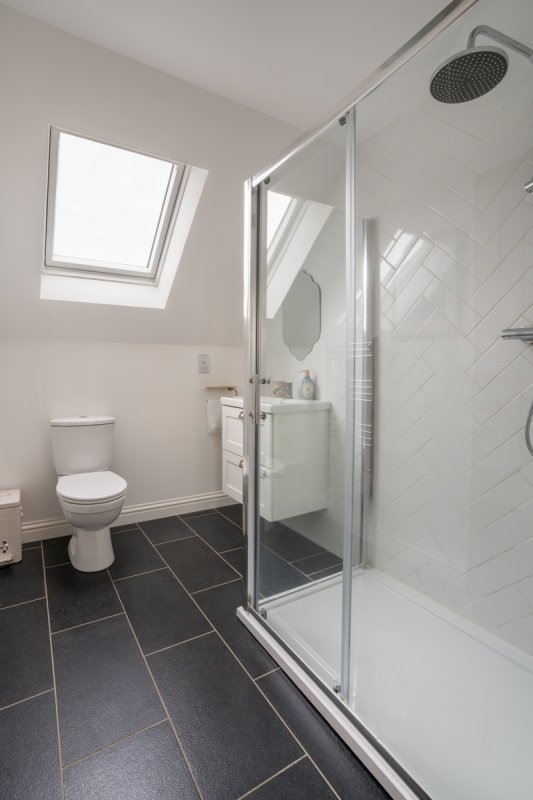 The second double is also king-sized with a comfy sofa seating area and chest of drawers, while the twin next door also has drawers and a dressing table too. These two bedrooms are served by a second bathroom upstairs, which has a shower cubicle, WC and basin.