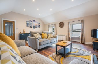 Entering Lileas you find a welcoming and spacious open plan living, dining and kitchen area, with a staircase leading to the upper floor. A double bedroom on the ground floor has views to the garden and plenty of storage for belongings. There is a a bathroom on the ground floor too, featuring a shower unit, basin and w.c. A useful separate utility room houses a washing machine and dryer and provides extra space for storing belongings.