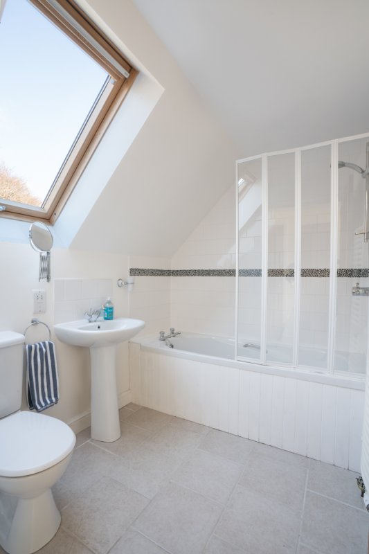 Up the stairs from the hallway there are three large bedrooms, all with ensuite bathrooms and lovely views towards the sea. The first bedroom has a double bed and single bed (so could be used as a twin room, or for a family of three) and there are two further double bedrooms (one standard sized double and one king sized). Each of the rooms are beautifully furnished and have ample storage for belongings, as well as modern, well-appointed bathrooms for your comfort. Don’t miss the chance to take a dip in the cottage’s Jacuzzi bath!