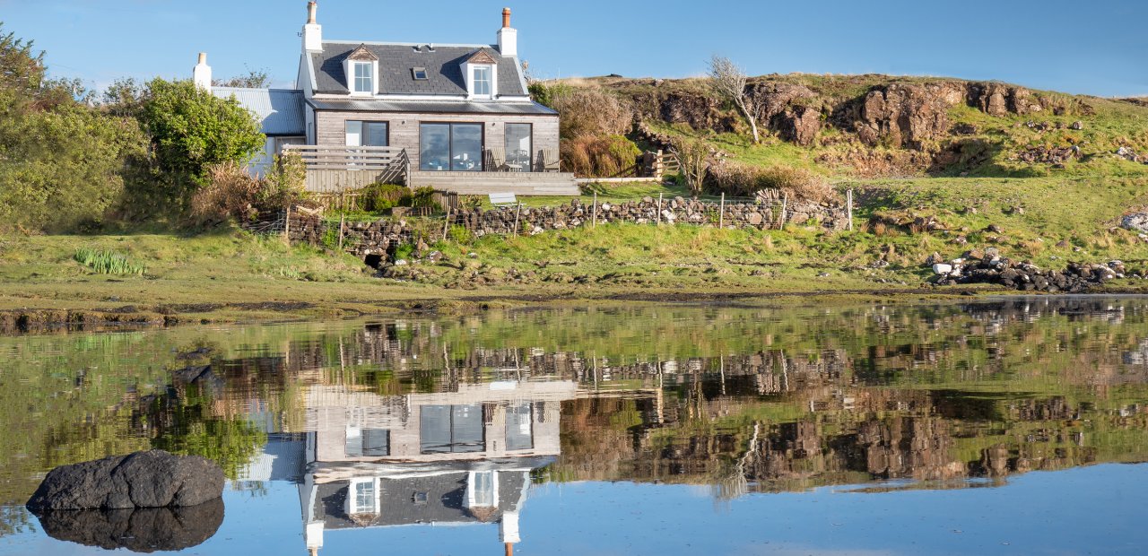 Open-plan living, superb views over Loch Cuin and a private lochan in the grounds make Torrbreac a seriously special pet friendly cottage in a private setting in the enchanting village of Dervaig.